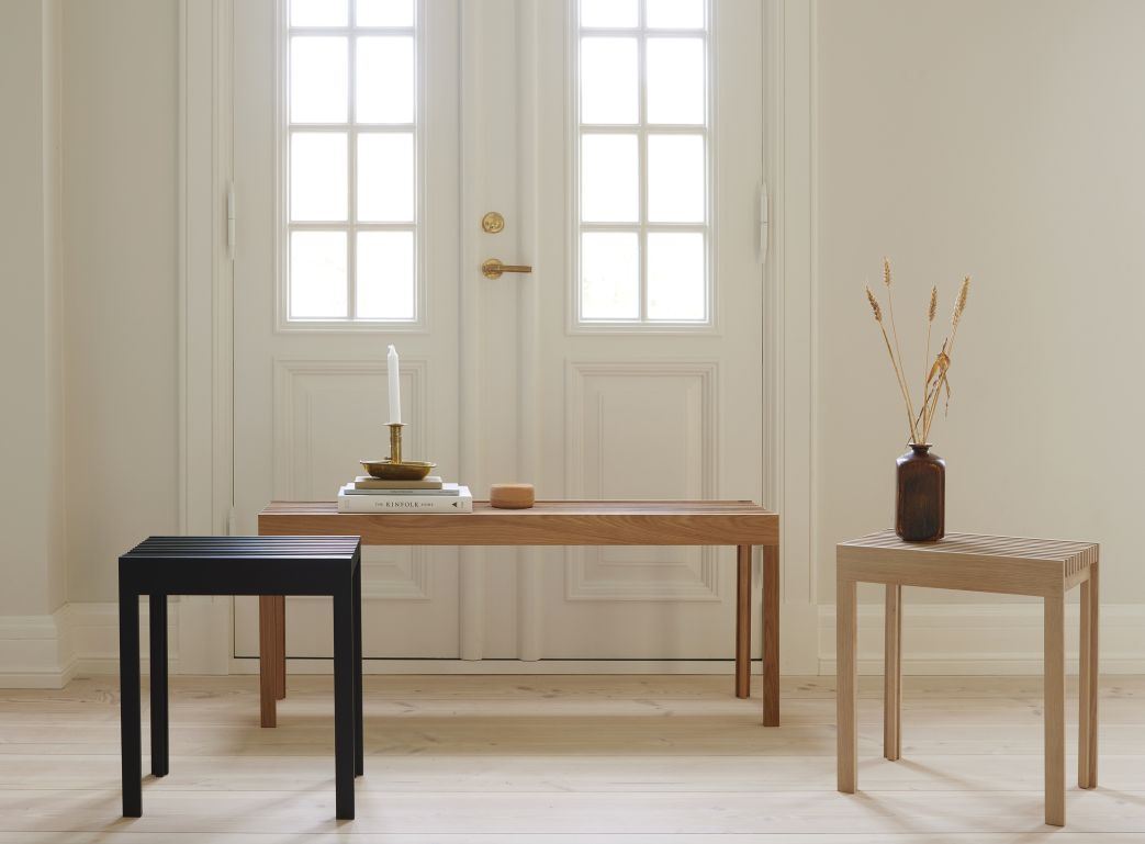 Den flotte, ultralette bænk er både stærk og solid med sit unikke design med lige hjørnebladssamlinger og lister i massivt træ. Bænken har et minimalistisk udtryk med rene linjer, som passer ind i mange hjem. Brug den i køkkenet, entréen, soveværelset eller badeværelset - høj kvalitet går aldrig af mode. Inspirationen er hentet fra klassiske snedkertraditioner, hvor ambitionen var at vise, hvordan traditionel kvalitet fungerer godt i et nutidigt designsprog.