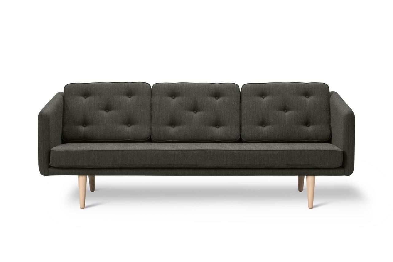 Stilren og komfortabel sofa fra Fredericia Furniture, designet af Børge Mogensen i 1955. Denne sofa blev Mogensens første design, efter han blev husdesigner hos Fredericia Furniture i 1955 - her designede Mogensens sofaen med henblik på, at forene en stram defineret form med en intim og blød karakter. Sofaen har et yderst æstetisk udtryk, samtidigt med at være funktionel. Kombinationen af en stram overpolsteret sofakasse og løse komfortable puder i ryg og sæde, bevarer Mogensens idé om, at skabe et solidt udtryk, samtidigt med at tilføje fleksibilitet. Puderne er nemme at fjerne, rengøre og banke, hvorfor denne sofa er perfekt til dig som hverken ønsker at gå på kompromis med kvalitet, funktionalitet eller design. De slanke og høje ben er desuden i perfekt harmoni med sofaens ellers minimalistiske udtryk, som brydes af de klassiske knapper på ryghynderne.