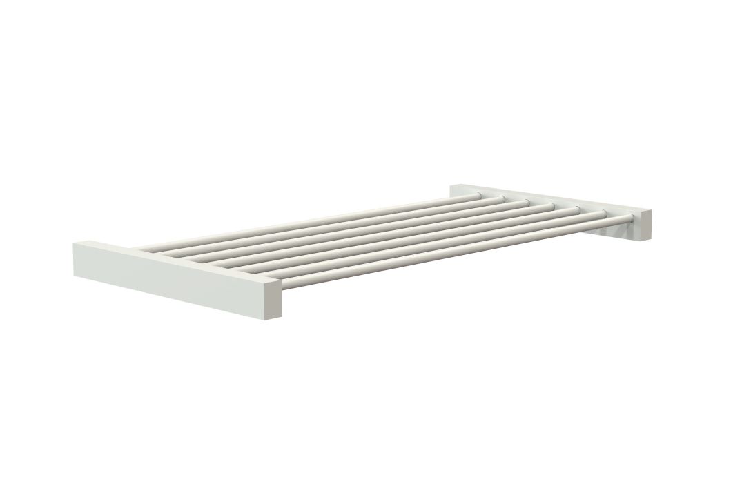Flot QUADRA hylde fra FROST. Hylden har en længde på 60 cm, er lavet i rustfrit stål og har en flot mat hvid finish. Hæng hylden på badeværelset og få plads til ekstra skønhedsprodukter, håndklæder eller andet. QUADRA består af tilbehør til bad, køkken og garderobe og kan kombineres på kryds og tværs lige efter dit behov, og så sørger hyldens tidløse og elegante design for, at den passer ind i de fleste eksisterende indretninger. Så ønsker du et frisk pust til indretningen på badeværelset er QUADRA perfekt.