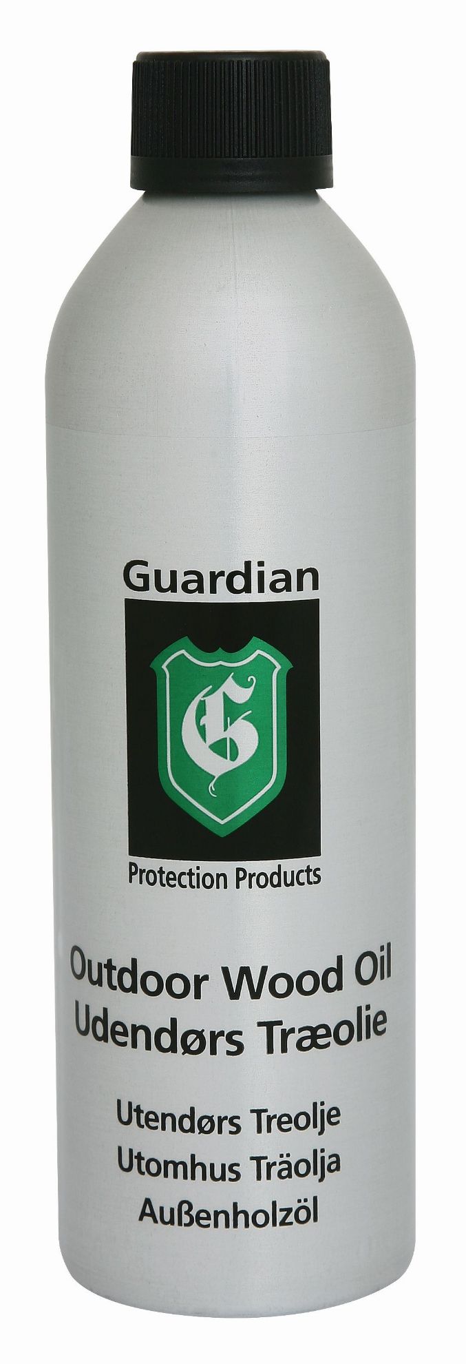 Guardian Udendørs Træolie, 600ml. Guardian Udendørs Træolie anvendes til oliering af ulakeret udendørs træ og beskytter imod mug- og skimmelsvamp, som kan for Se mere ...