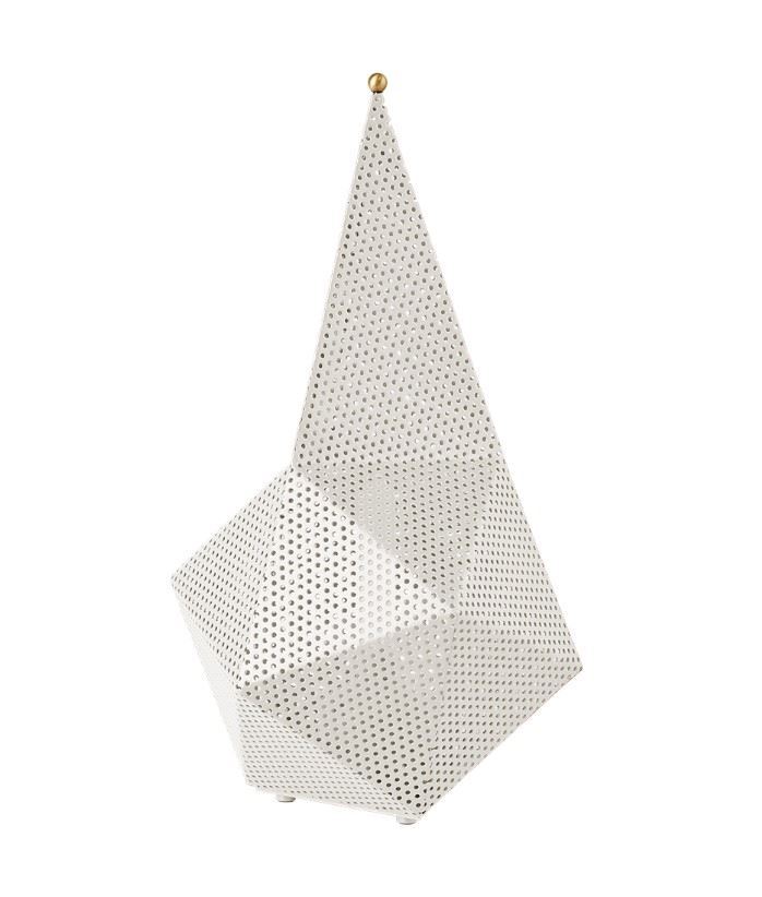 Oprindeligt designet i 1954, er Bagdad-lampen en strålende, skæv fremvisning af Mathieu Matégots materialefascination med perforeret metal. En facetteret, kubistisk konstruktion med en kometlignende hale, Bagdads skulpturelle design har vist sig tidløst i sin legende unikke stil. Den nye udgave er halvt så stor og tilføjer yderligere alsidighed ved at gøre den bærbar. Udstyret med en berøringsaktiveret dæmper med tre lysstyrkeniveauer og tilgængelig i tre farver – Sort, Hvid og International Orange – repræsenterer Bagdad en unik tilføjelse til GUBIs Matégot-portefølje og den stadigt voksende samling af genopladelige lamper uden grænser.
