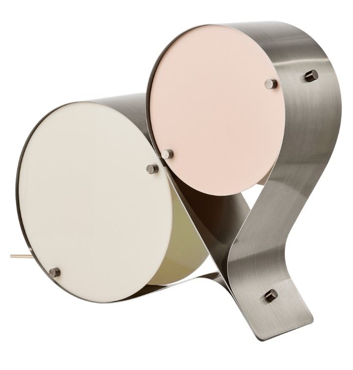 Coppia Table Lamp er en ny, skulpturel bordlampe med to pærer, designet til GUBI af Vibeke Fonnesberg Schmidt. Lampen har to skiver af Fonnesberg Schmidts karakteristiske plexiglas, indrammet i en buet metalstruktur. Det elegante industrielle design repræsenterer både et nyt materiale og en ny designer for GUBI. Det flydende, men geometriske design er robust nok til at fungere både som bord- og gulvlampe og kan nemt flyttes fra skrivebord til sengebord, hylde til vindueskarm efter ønske. Coppia fås i hærdet, børstet rustfrit stål, hvor dens bronzeglød står i kontrast til tre naturinspirerede plexiglasfarver: Ivory/Blush, Ivory/Olive og Ivory/Clover.