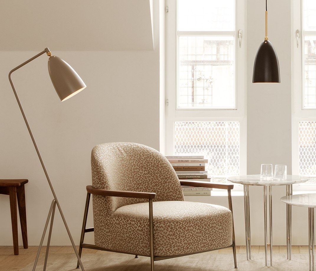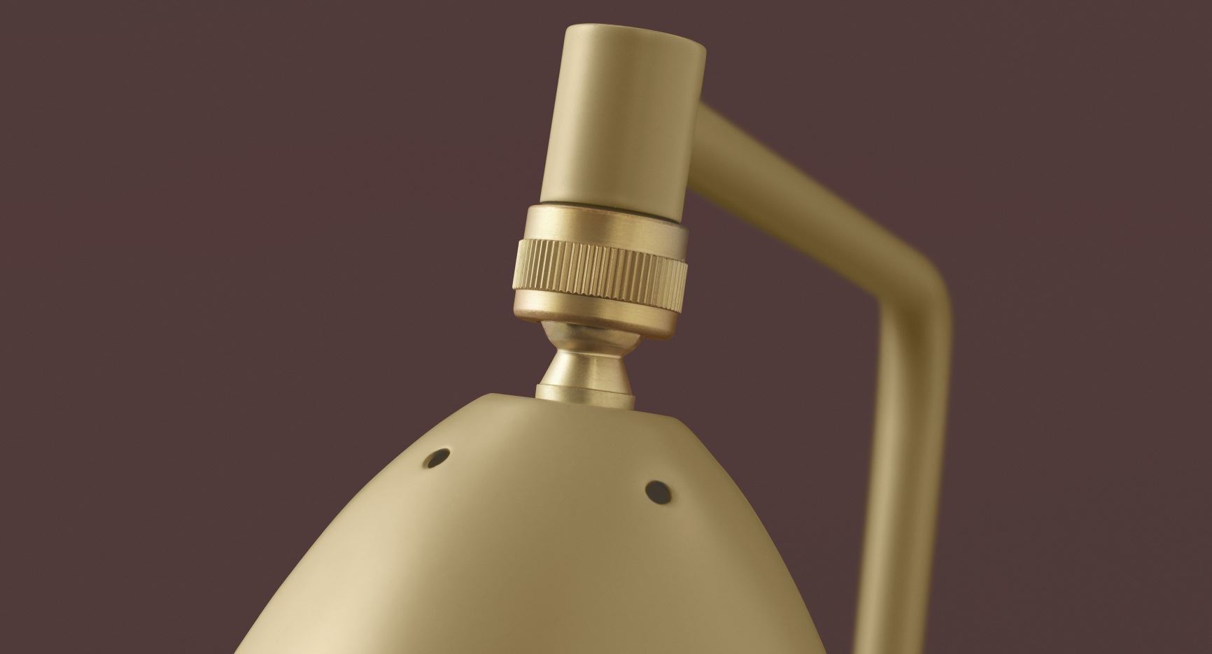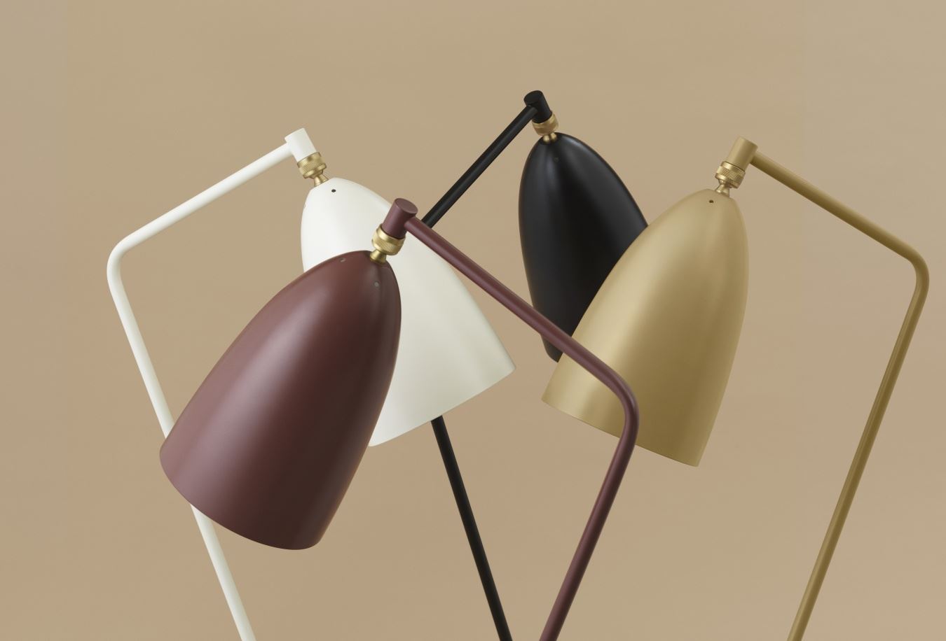Den ikoniske gulvlampe Gräshoppa, af designeren Greta M. Grossman, så første gang dagens lys I 1947. Den unikke stativplade på Gräshoppa lampen vippes bagud og giver indtryk af, at lampen på en eller anden måde er levende og stalker sit bytte. Som en af Grossmans mest ikoniske design har den autentiske lampe en langstrakt konisk skygge, der roterer med direkte lys, hvor det er nødvendigt. Pære medfølger ikke.