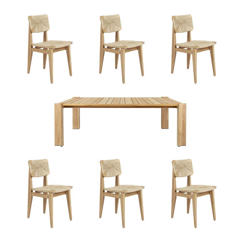 GUBI Outdoor Atmosfera Bord L: 209 cm + 6 Cascoin C-Chair Stole - Teak/Flet