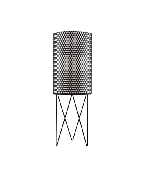 PD2 Gulvlampen i sort er designet i 1955 af Barba Corsini. Den skulle indgå i indretningen i en af verdens mest fremtrædende bygninger, La Pedrera i Barcelona. Inspirationen til lampens base kom fra de hvælvede lofter af La Pedrera, mens inspirationen til den cylindriske form og den unikke perforerede detalje af skorstenene har påvirket lampeskærmens form.