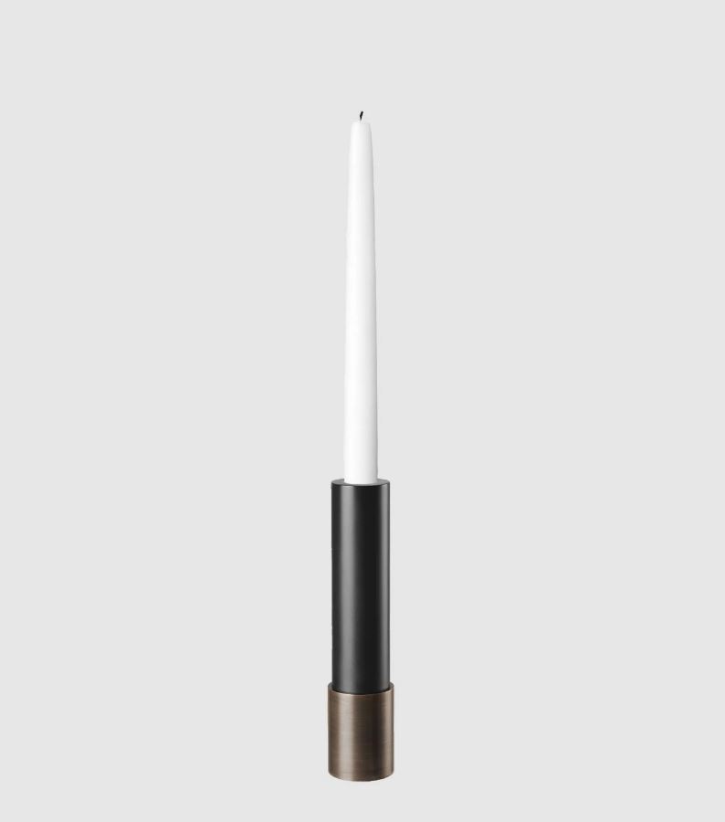 Flot lysestage designet af Space Copenhagen i samarbejde med GUBI. Med sin enkelte, elegante silhuet forener lysestagen de industrielle materialer af poleret stål og mørkt antik messing. Lysestagens tyngde står i en flot kontrakt til det lyse designudtryk, som giver en følelse af ekstravagance. Lysestagen kommer i tre forskellige højder, og de kan med fordel bruges alene eller i en sammensætning med tre lysestager eller måske flere. De kan arrangeres på en lige streg eller stilles lidt tilfældigt for at få et lidt mere legende udtryk.