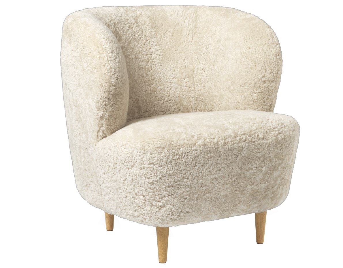 Den lille loungestol fra GUBI er næsten ikke til at forlade, når du først sidder i den. De bløde former kombineret med det naturlige fåreskind, emmer af hygge og varm stemning. Stolen fylder ikke meget og uanset om stolen skal stå i stuen eller i foyeren på kontoret, vil den uden tvivl efterlade et indtyk af, at man er mere end velkommen.