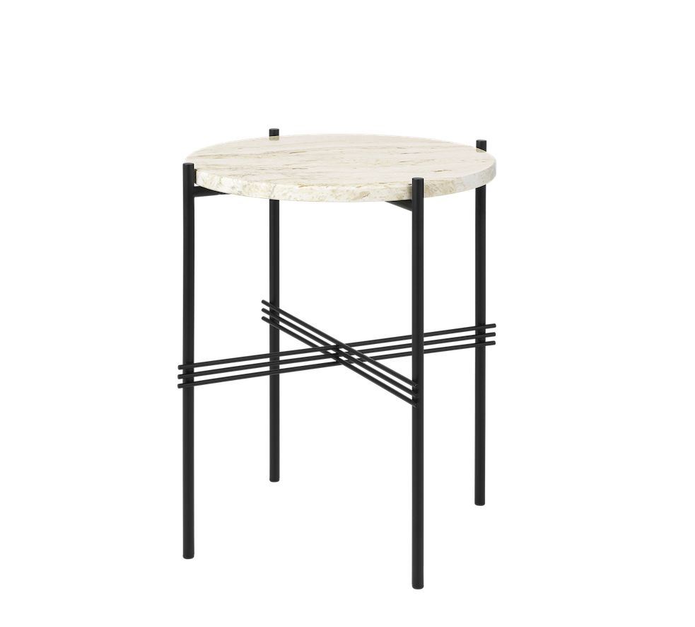 GUBI TS Side Table Ø: 40 cm - Black Base / Neutral White Travertine