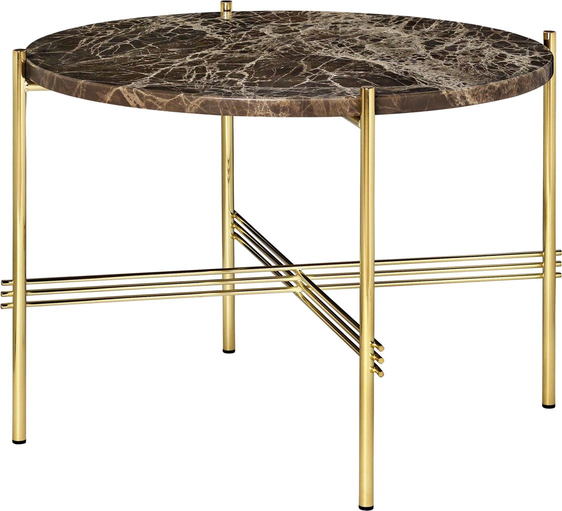 GUBI TS Coffee Table Ø: 80 cm - Brass Base / Brown Emperador Marble