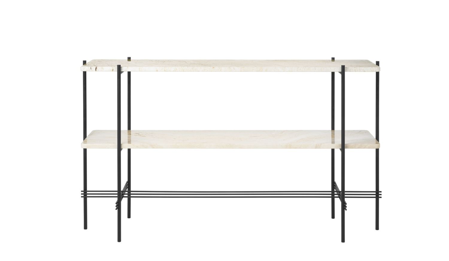 GUBI TS Console 2 Racks 120x30x72 cm - Black Base/Neutral White Travertine