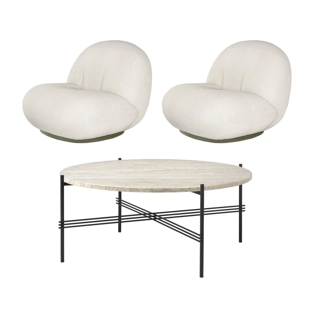 GUBI TS Outdoor Coffee Table + Pacha Outdoor Lounge Chairs Havemøbelsæt - White/Steel/Lorkey Limonta 40