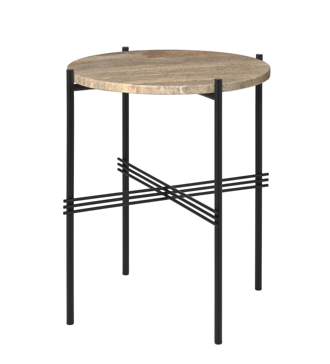 GUBI TS Side Table Ø: 40 cm - Black Base / Warm Taupe Travertine