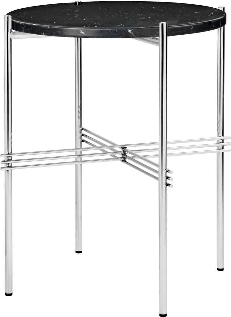 GUBI TS Side Table Ø: 40 cm - Polished Steel/Black Marquina Marble