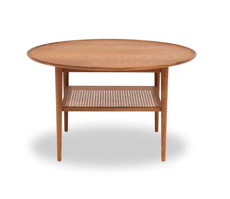 Smukt og utraditionelt sofabord fra Haslev. Sofabordet har en profileret kant på bordpladen samt en rattanhylde i lys fransk flet, der er med til at give borde Se mere ...