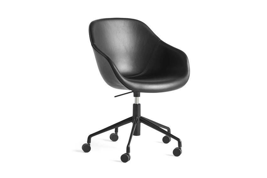 HAY AAC153 Fuldpolstret Kontorstol m/hjul - Sort Sense Læder/Sort Aluminium