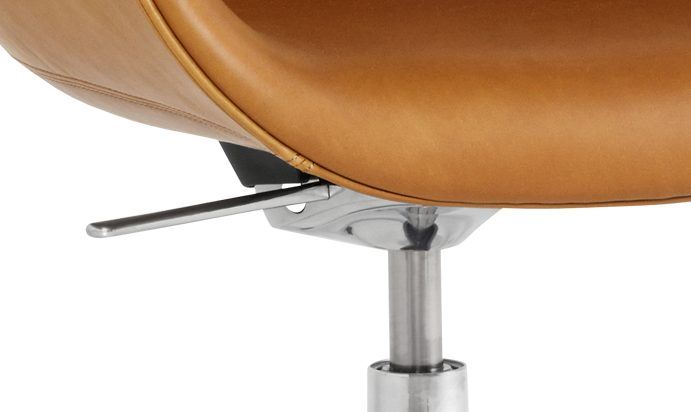 AAC 155 er designet af Hee Welling i samarbejde med HAY. AAC 155 drejestolen er både funktionel og praktisk. Stolens fembenet hjulbund er kombineret med høj funktionalitet og optimal komfort. AAC 155 er en arbejdsstol med moderne æstetik med samme høje ryglæn og generøse sæde som kendetegner AAC serierne. Basen er udstyret med vippemekanisme og gaslift som gør det muligt at justere sædehøjden. Stolen er velegnet i en lang række indretningssammenhænge. Brug den for eksempel som spisebordsstol, kontorstol eller til mødebordet. Stolen kan med fordel bruges i private såvel som offentlige sammenhænge. Anilin læder der den type læder, der bedst nærmer sig den naturlige udgave af læder. Der er ingen overfladebehandling, hvilket gør hvert enkel stol unik i udseende.