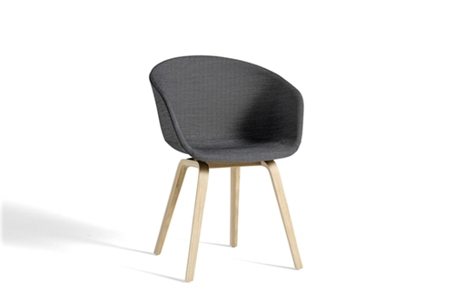 HAY AAC 23 stolen er en del af About a Chair serierne. Stolene er designet af Hee Welling i samarbejde med HAY og er yderst elegante og oser af den enkelthed som karakteriserer hele serien. Stolen er en fuldpolstret luksusudgave. AAC 23 har en skal bestående af polypropylen og dens armlæn er med til at bidrage til optimal komfort. Stolen har en blød, ensartet og stilren silhuet, og stolens firebenet træbase tilføjer et klassisk udtryk til designet. Stolen er velegnet i det private såvel som arbejdspladser og offentlige institutioner. Brug den som spisebordsstol i spisestuen, som konference stol i mødelokalet, som kontorstol på hjemmekontoret eller placer den i et venteområde. Du kan stille stolen for sig, eller kombinere den med forskellige farver stole for at give indretningen et personligt præg. Stolen er polstret med Surface By HAY tekstil. Tekstilet har en Martindale på 100.000 hvilket betyder, at du får en slidstærk og robust stol, som du kan få glæde af i mange år.