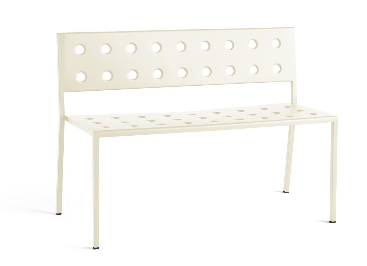 HAY Balcony Dining Bench er designet af Ronan og Erwan Bouroullec og er en funktionel bænk til udendørs brug. Balcony serien forener et rektangulært design med bløde, imødekommende former og slanke ben. Hullerne i designet styrker konstruktionen samtidigt med, at den skaber et særligt udtryk. Balcony Dining Bench er lavet i pulverlakeret stål med en udendørs primer for optimal holdbarhed. Bænken kommer i forskellige farver, hvilket gør den egnet til en bred række indretninger, og kan bruges til indretning af alt fra udendørs områder til altaner.