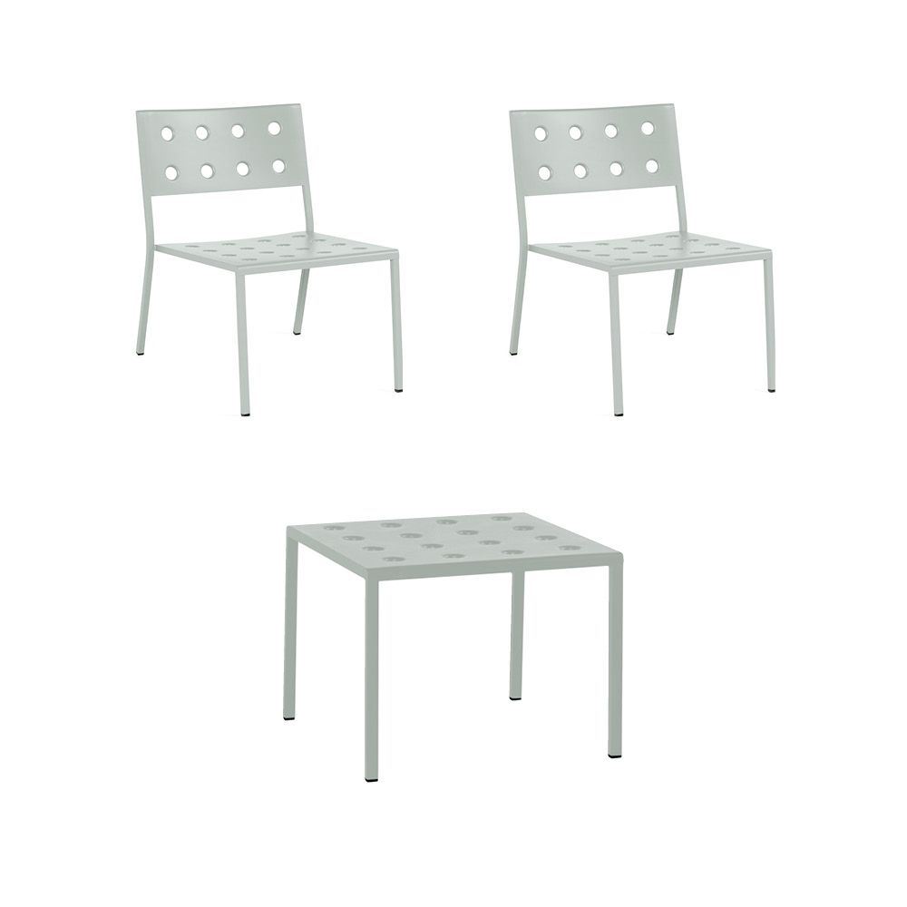 HAY Balcony Lounge sæt bestående af bord og 2 lounge stole. Sættet er ideelt til haven, terrassen eller altanen. Nyd en lækker snack eller drink i solens varme stråler i godt selvskab med venner og familie. Dette sæt vil bringe både stil og hygge til dit udendørsområde.