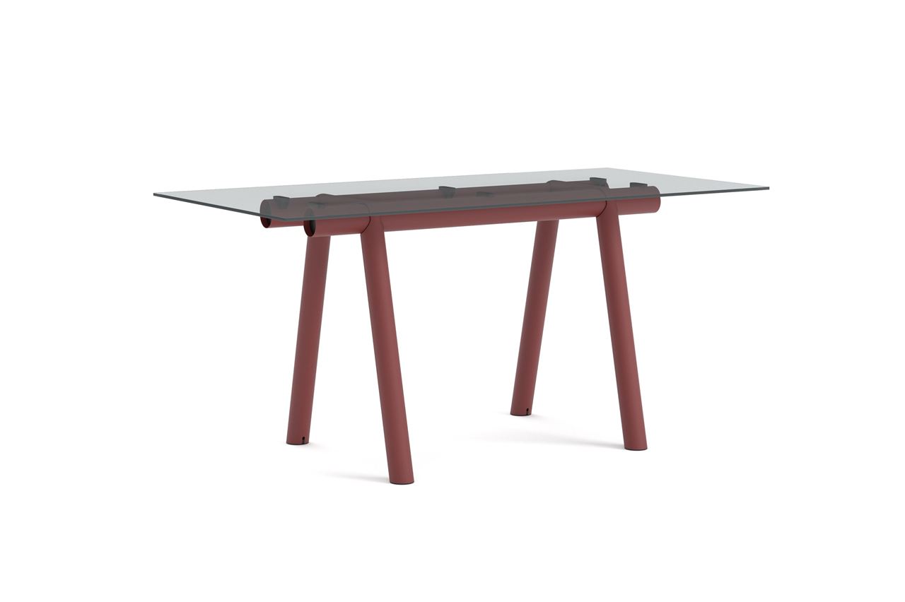HAY Boa Table 1100 280x110x105 cm - Barn Red/Clear Glass