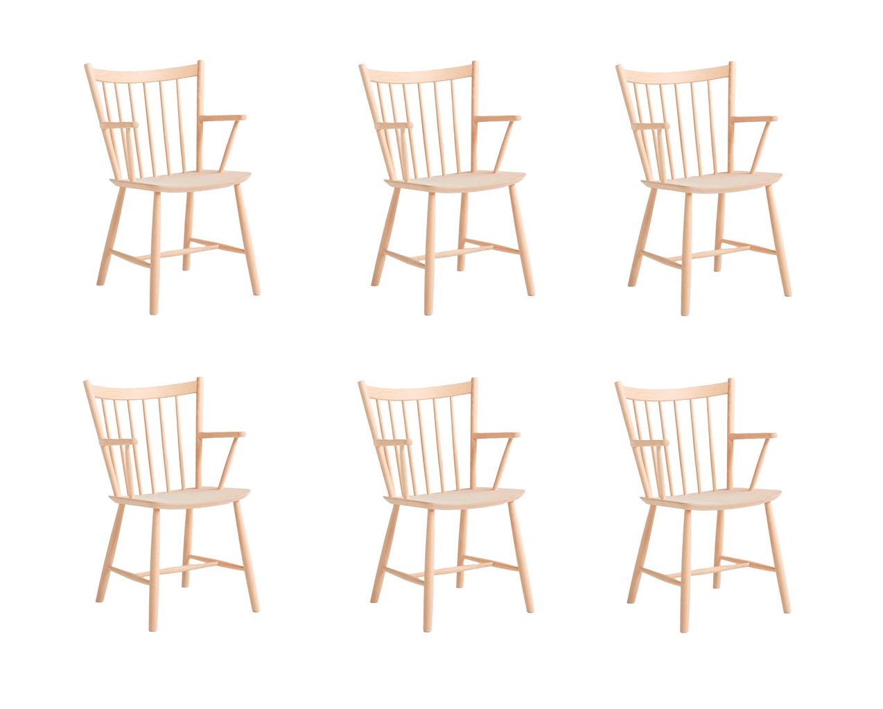 HAY Børge Mogensen J42 Armstol SH: 44,5 cm Sæt af 6 stk. - Lakeret Eg