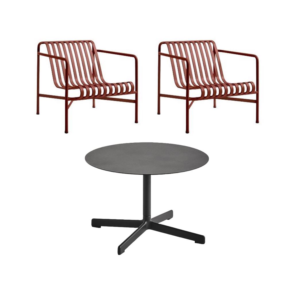 HAY Neu Table Low + Palissade Lounge Chairs Low Havemøbelsæt - Anthracite/Iron Red