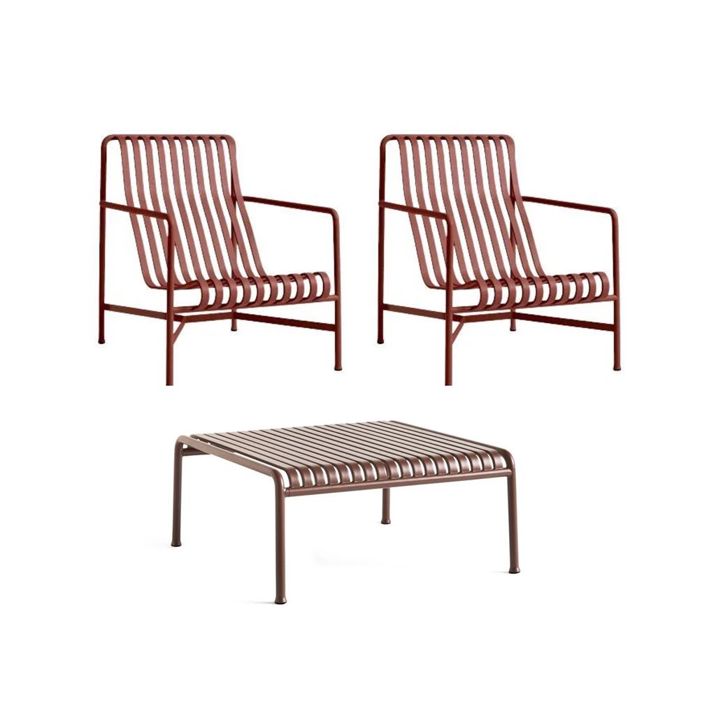 HAY Palissade Table Low + Lounge Chairs High Havemøbelsæt - Iron Red