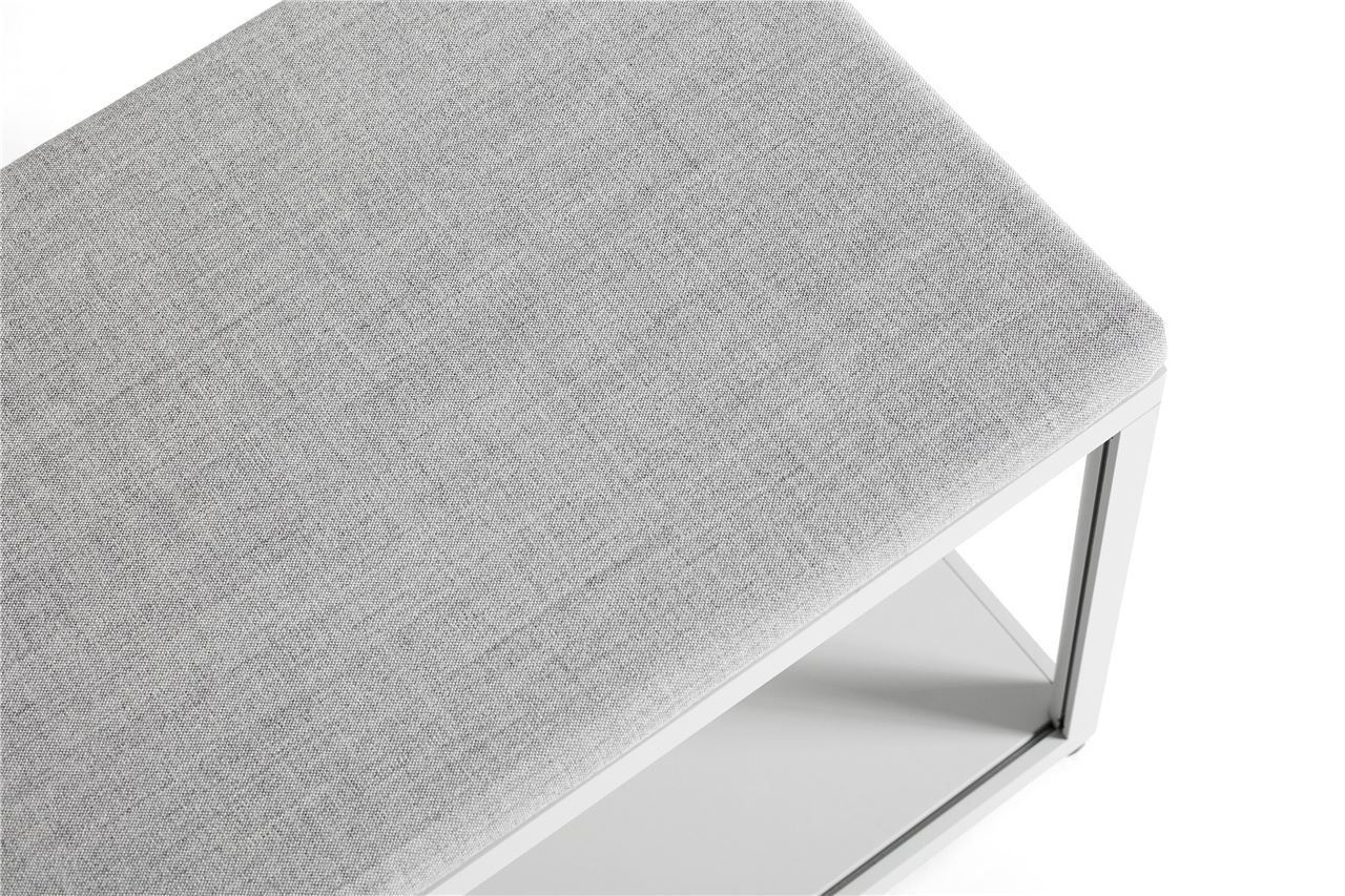 Funktionel og enkel bænk fra HAY, New Order System. New Order kombinationen 100 består af en siddeflade, samt opbevaringsplads under siddefladen. Bænken vil være optimal at bruge i entréen, hvor du kan sidde og tage sko på. Placere kasser til opbevaring under bænken og hav det mest nødvendige ved hånden, når du er på vej ud af døren. Har du brug for mere siddeplads kan du placerer flere af bænkene ved siden af hinanden. Mix og match bænkende i forskellige farver og tekstiler.