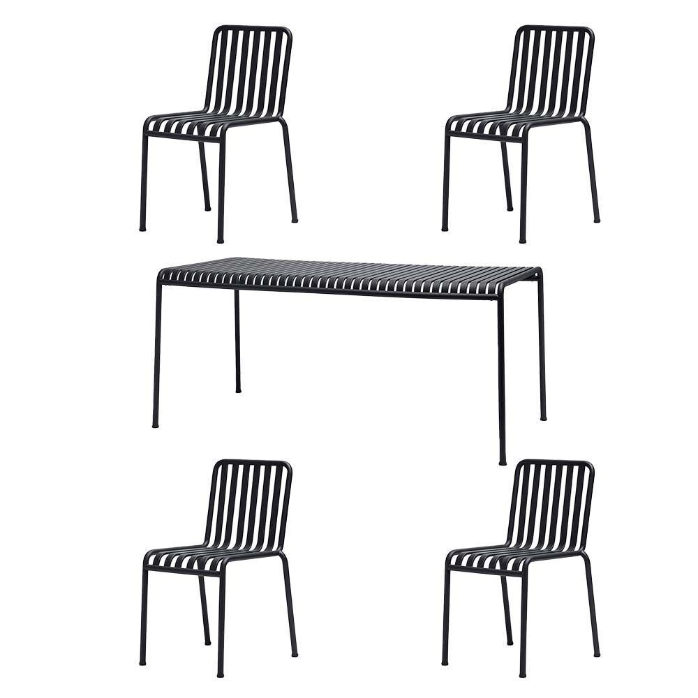 HAY Palissade sæt bestående af bord og 4 stole. Sættet er ideelt til have eller terrasse og giver mulighed for at samles på de varme sommer aftener. Skab en smuk sammenhæng i det udendørs rum med dette stilrene havesæt.