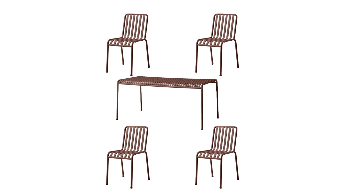 HAY Palissade sæt bestående af bord og 4 stole. Sættet er ideelt til have eller terrasse og giver mulighed for at samles på de varme sommer aftener. Skab en smuk sammenhæng i det udendørs rum med dette stilrene havesæt.
