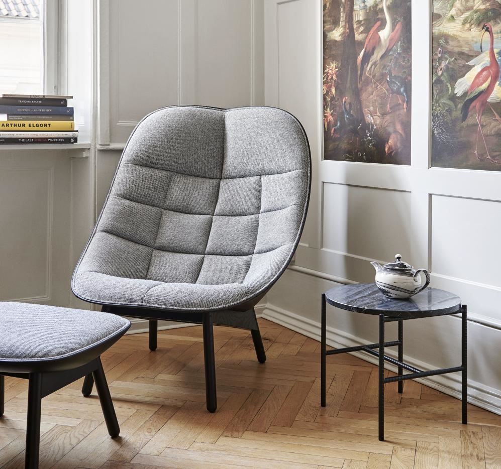 Flot lænestol Uchiwa fra HAY. Stolen er designet af Doshi Levien og er inspireret af de japanske håndvifter. Det er en yderst rummelig og stor lænestol med plads til fordybelse og afslapning. Tag din yndlingsdrik og find en god bog og sæt dig godt til rette. Uchiwa lænestolen er til dig der ønsker en god lænestol, som har en åben form og en følelse af fordybelse. Uchiwa stolen kommer i flere farver og i to versioner: en blød quiltet model til det hyggelige hjemmemiljø og en i støbt skum til en mere krævende kontrast.