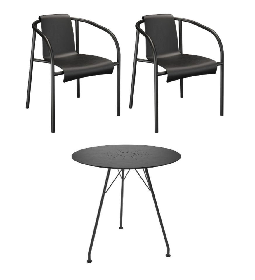 Dette havemøbelsæt består af 1x Circum havebord samt 2x NAMI havestole.