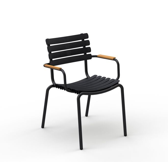 Den smukke havestol med brede plastiklameller på et minimalistisk stel i pulverlakeret aluminium. Stolen har et rent og skarpt design, men med de bløde, runder kurver får den også et levende og dynamisk udtryk. Lamellerne er lavet af dansk husholdningsplastikaffald og produceret i Danmark. Her er altså i bund og grund tale om en kombination mellem dansk design og dansk innovation, som smelter sammen og harmonerer rigtig godt ved dette møbel.