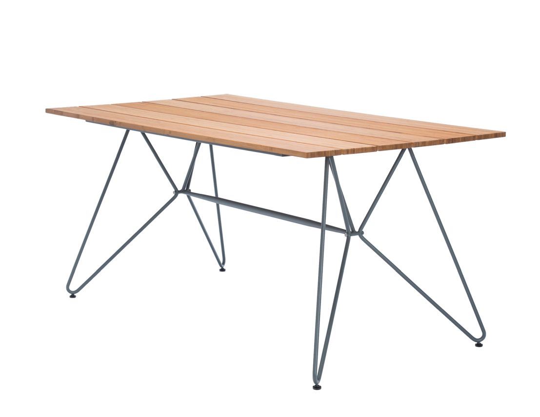 Havebord fra HOUE, med en smuk, skulpturel metalstruktur, som er med til at give Sketch bordet et minimalistisk udtryk. Bordpladen er lavet af bambus, som er forolieret og stellet er lavet af grå pulverlakeret stål. Sketch bordet oser af klassiske detaljer der med sit moderne udtryk, passer ind på alle terrasser. Bambus er et naturprodukt, som naturligvis skal have pleje et par gange i året. Udover dette, får du et bord der groft sagt passer sig selv, da det er utrolig robust og holder til al slags vejr.