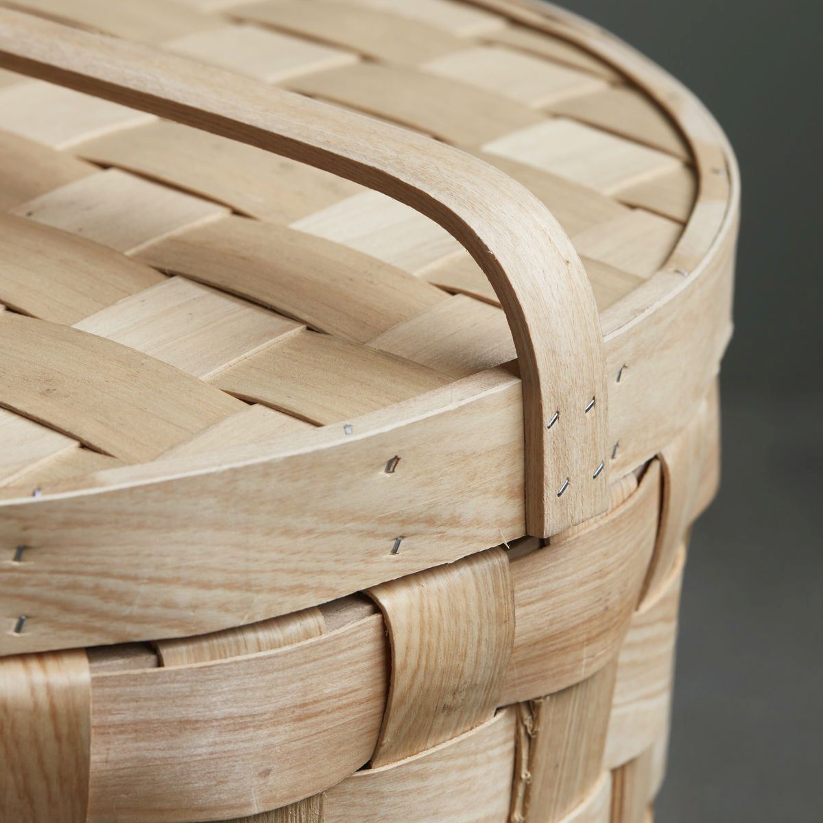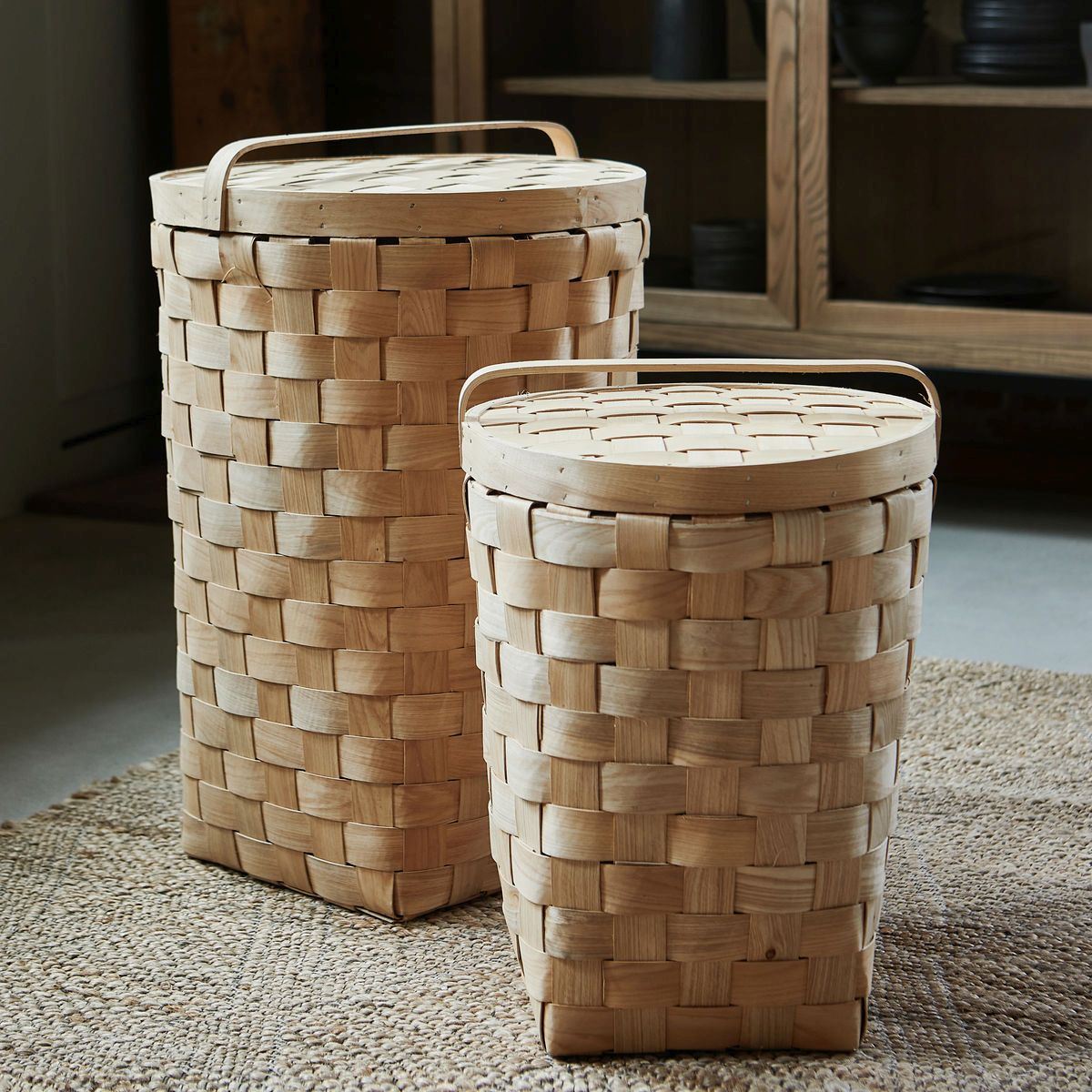 Sæt med to flettede Edition kurve med låg fra House Doctor. Kurvene kommer i to forskellige størrelser, hvilket gør det let at bruge dem til sortering og opbevaring forskellige steder i hjemmet. Selvom de kan bruges til praktiske ting, har deres design et let og dekorativt udtryk der pynter i enhver indretning. De er flettet af træflis i en naturlig farve der kan kombineres med møbler i adskillige farver og materialer.