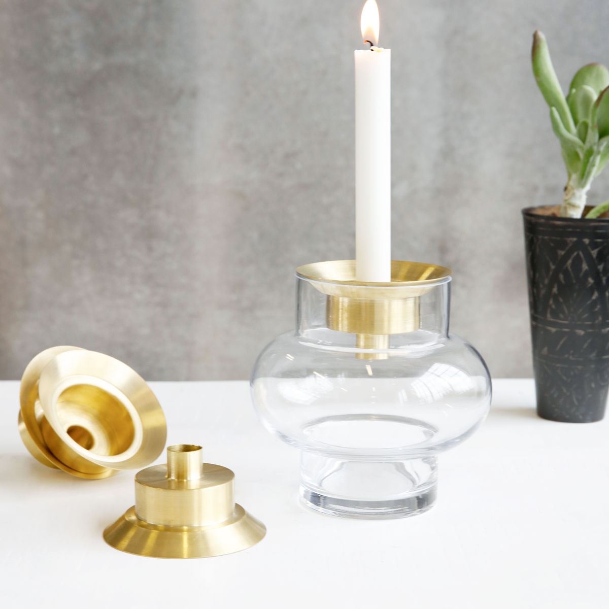 Lid er fremstillet i messing og kan bruges som en fin lille detalje i din glasvase eller vendes omvendt, så den fungerer som lysestage med plads til et enkelt stearinlys.