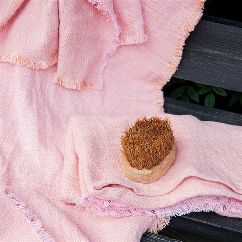 Smukt hammam-håndklæde fra Reflection-serien. Serien er inspireret af naturens strukturer og har på én gang både en fin og en rå overflade, hvilket gør farven levende. Håndklædet er lavet af 100% økologisk bomuld, det gør at håndklædet føles dejligt blødt og utroligt behageligt mod kroppen. Håndklædet kommer i en flot pink farve og måler 50 x 100 cm. Håndklædet er clevercare-mærket, hvilket betyder at håndklædets kvalitet, farve og sugeevne bedst bevares ved at vaske håndklædet ved 40°C men du kan også vaske håndklædet ved 60°C. Udtryk din personlighed med disse flotte håndklæder, du kan for eksempel kombinere forskellige farver håndklæder på tværs for en mere livlig og dynamisk indretning.