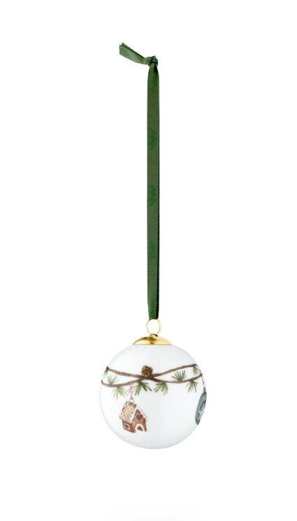 Julekuglen 2023 fra Hammershøi Christmas har en diameter på 6 cm og er en hyldest til den autentiske, nostalgiske jul – dekoreret med et grønt, flettet julehjerte, et rensdyr, en julegris iført et lyseblåt bånd og en lilla svamp. Måske har du allerede en eller flere Hammershøi-julekugler fra de foregående år? Lad dem sammen skabe julestemning i vinduet, eller hæng dem på grene, der placeres i en vase. De yndige julemotiver er gennem årene skabt af kunstner Rikke Jacobsen, der hvert år tilfører det klassiske Hammershøi-stel endnu et strejf af julemagi. I dag rummer Hammershøi Christmas dele nok til en komplet opdækning til alle decembers måltider, fra brunch og frokost til julemiddag. Der følger en smuk, grøn silkesnor med til kuglen, så du nemt kan hænge den op.