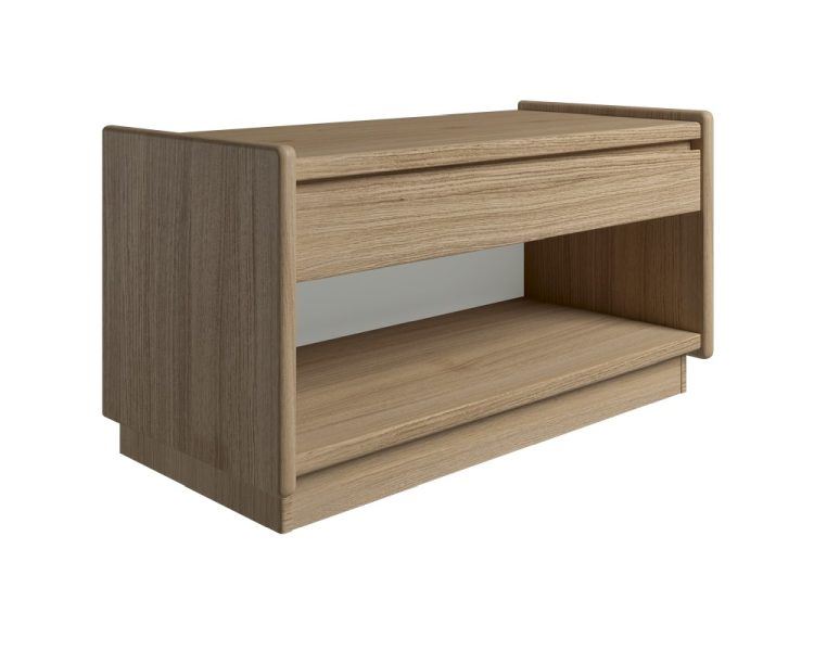 Sengebord fra danske Kaagaard. 218037 sengebordet har et enkelt design med elegante afrundede hjørner. Bordet består af en skuffe og et åbent rum. Sengebordet Se mere ...