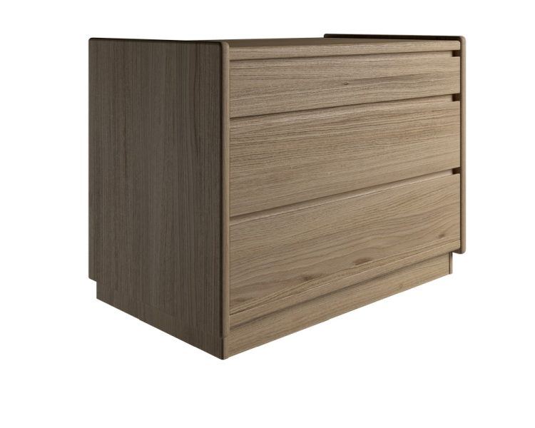 Kommode fra danske Kaagaard. Kommoden har 1 lav samt 2 høje skuffer. Den naturlige træfarve farve giver kommoden et elegant udtryk og det minimalistiske design gør det nemt at tilføje kommoden i mange forskellige former for indretningssammenhænge, og så passer det ideelt ind i den skandinaviske og minimalistiske indretning. Kommoden giver bestemt plads til indretningen og kan bruges i næsten alle hjemmets rum. Stil den i stuen, soveværelset, børneværelset gangen eller entreen.