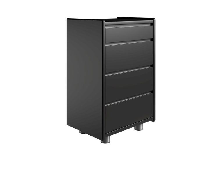 Kommode fra danske Kaagaard. Kommoden har 1 lav samt 3 høje skuffer. Den sorte farve giver kommoden et elegant udtryk og det minimalistiske design gør det nemt at tilføje kommoden i mange forskellige former for indretningssammenhænge, og så passer det ideelt ind i den skandinaviske og minimalistiske indretning. Kommoden giver bestemt plads til indretningen og kan bruges i næsten alle hjemmets rum. Stil den i stuen, soveværelset, børneværelset gangen eller entreen.