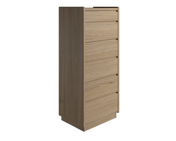 Kommode fra danske Kaagaard. Kommoden har 1 lav samt 5 høje skuffer. Den naturlige farve giver kommoden et elegant udtryk og det minimalistiske design gør det nemt at tilføje kommoden i mange forskellige former for indretningssammenhænge, og så passer det ideelt ind i den skandinaviske og minimalistiske indretning. Kommoden giver bestemt plads til indretningen og kan bruges i næsten alle hjemmets rum. Stil den for eksempel på soveværelset, stuen, spisestuen, børneværelset, gangen eller entreen.