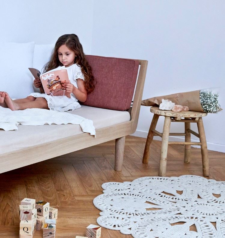 Smukt slidstærkt tæppe i hæklet look fra Kas Kopenhagen. Tæppet giver en hyggelig naturlig stemning i både børneværelse, soveværelse og entré.