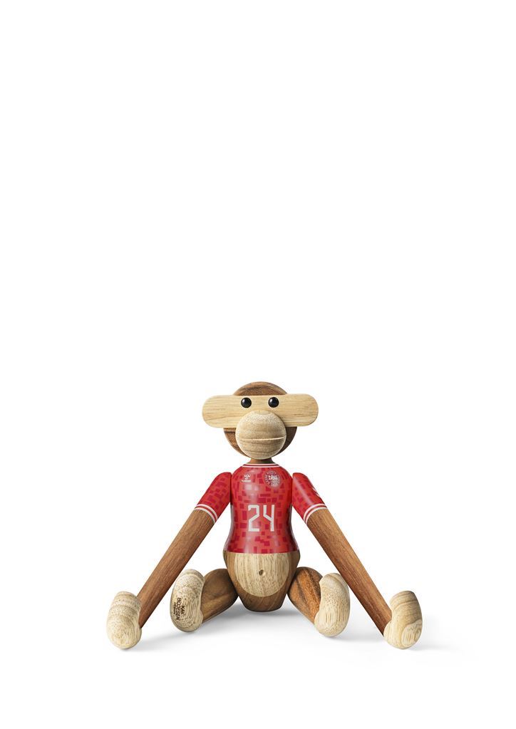 Aben fås iklædt herrelandsholdets flotte påmalede hjemmebanetrøjer, der begge er fortolket i tråd med figurhistorien og Kay Bojesens DNA helt ned til den mindste detalje, så de to trøjedesigns står så tæt som muligt på originalen og alligevel med deres helt eget tvist. Aben kommer i det klassiske mix af FSC®-certificeret teak og kontrolleret limbatræ. Samarbejdet med DBU sætter Kay Bojesens originale fortællinger i træ i en ny kontekst og tilføjer ydmygt og med et glimt i øjet et funklende nyt kapitel til en i forvejen smilende og levende designarv.