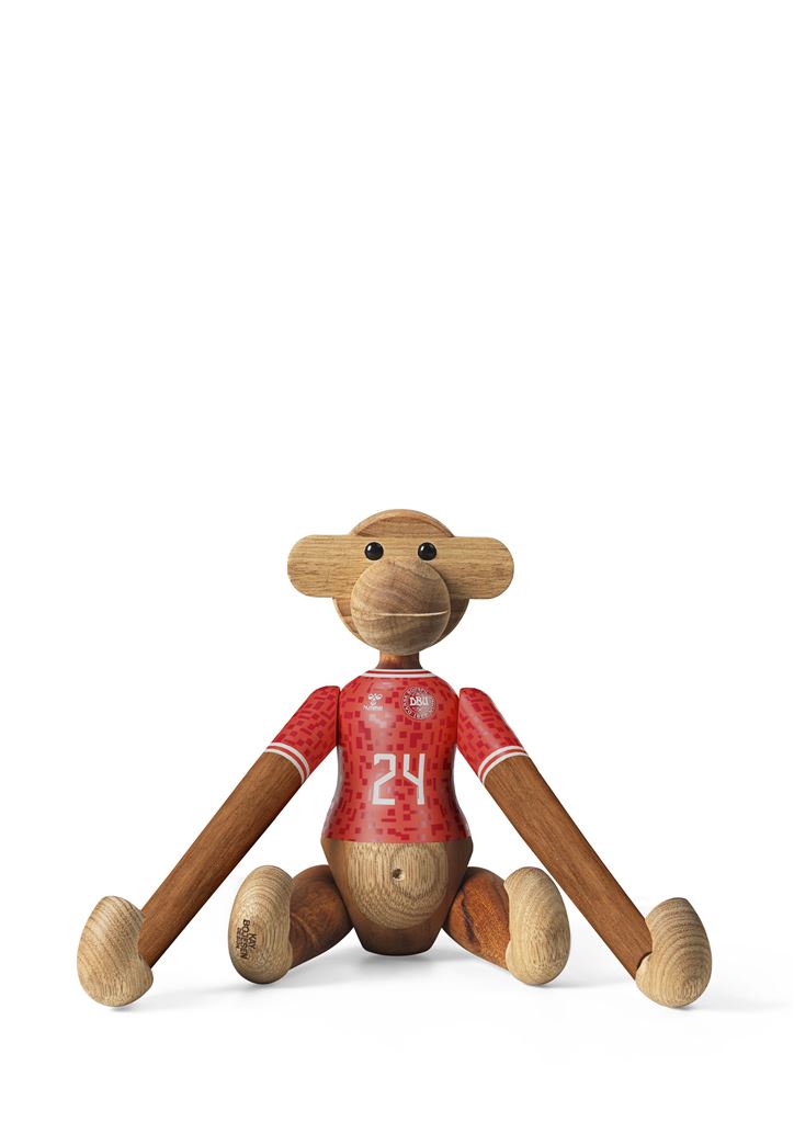 Ny holdkammerat til alle i rødt og hvidt. Med Kay Bojesen Abe x DBU er to af de største danske nationalikoner gået sammen for med humor, kreativitet og det gode håndværk at hylde sammenholdet og stoltheden over at stå sammen side om side fra leg til landshold. Og ligesom fodboldens verden byder på rækker og ligaer fra miniput til megastjerne, så kan du selvfølgelig også få Kay Bojesen Abe x DBU i den størrelse, der lige præcis passer ind i dit fanbarometer.