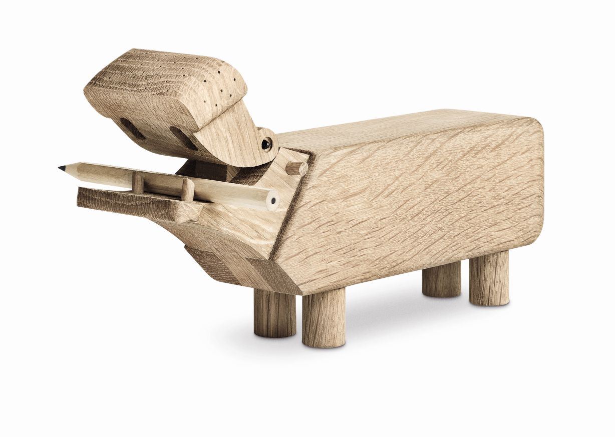 Den ranke flodhest kan få sin faste plads på skrivebordet med din yndlings kuglepen i munden. Flodhesten kom til verden i 1955, og indbyder til klap på hovedet og kærlige smil. Brug også flodhesten som en del af din boligindretning og sammen med den resterende trædyr-familie fra Kay Bojesen.