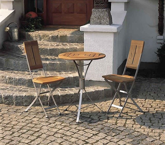 Smukt havebord i teak og rustfrit stål fra Kircodan. Havebordet er designet af Arne Vodder, der tydeligvis har været inspireret at det maritime miljø på et smukt skibsdæk. Derfor har bordet et eksklusivt og naturligt udtryk.