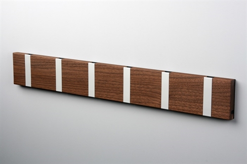 Super flot og elegant knagerække fra KNAX. Knagerækken kommer i en flot valnød brun farve og har grå knager. Den er stilfuld og dermed kan den bruges i mange indretninger. Brug knagerækken i entréen, stuen, soveværelset eller måske køkkennet. Knagerækken er 59,4 cm lang og 7,9 cm høj. Knagerækken har 6 knager. Alle knager er med vippefunktion.