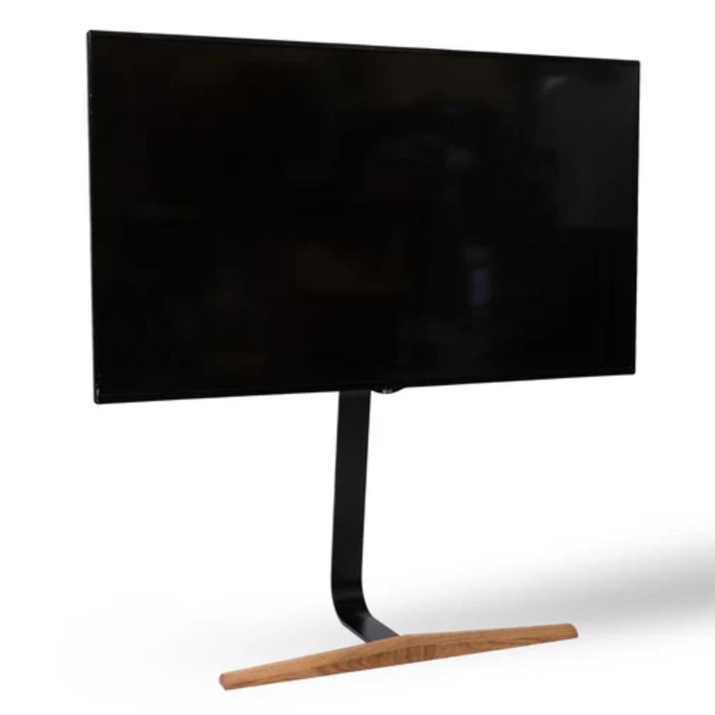 Den robuste base i massivt træ tilfører et varmt, naturligt præg, som smukt komplementerer enhver indretning. Samtidig giver den enkle, minimalistiske konstruktion stativet et let og elegant udtryk.