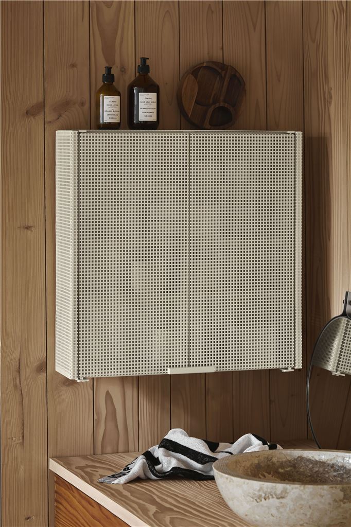Kristina Dams Grid Wall Cabinet er en blød og stilfuld opbevaringsmulighed til hjemme.